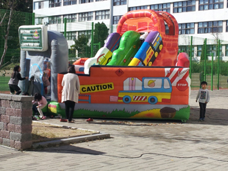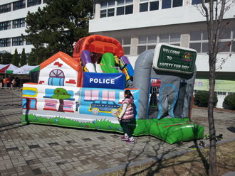바운스 내부에 도시의 구성요소들을 다양한 놀이 기구로 변신시켜 놓았습니다.