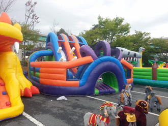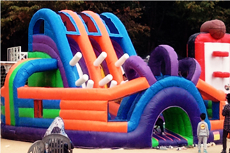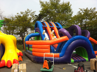 쿠키 슬라이드와 에어풀장을 함께 사용하시면 여름 행사 준비로 제격입니다.