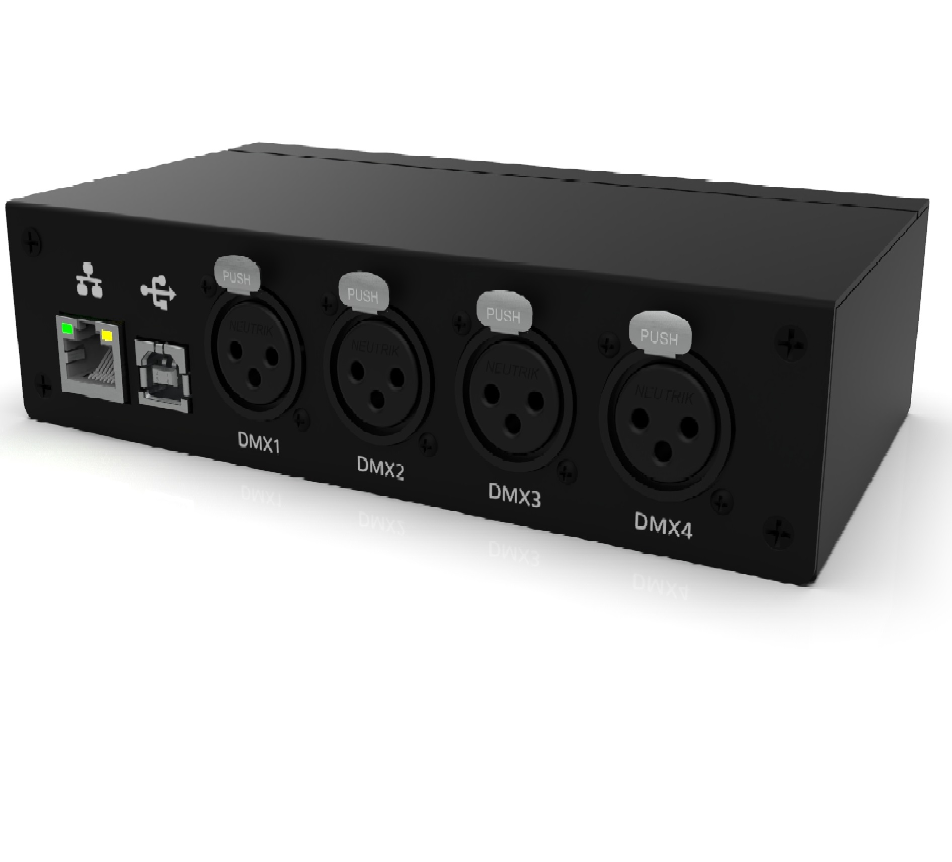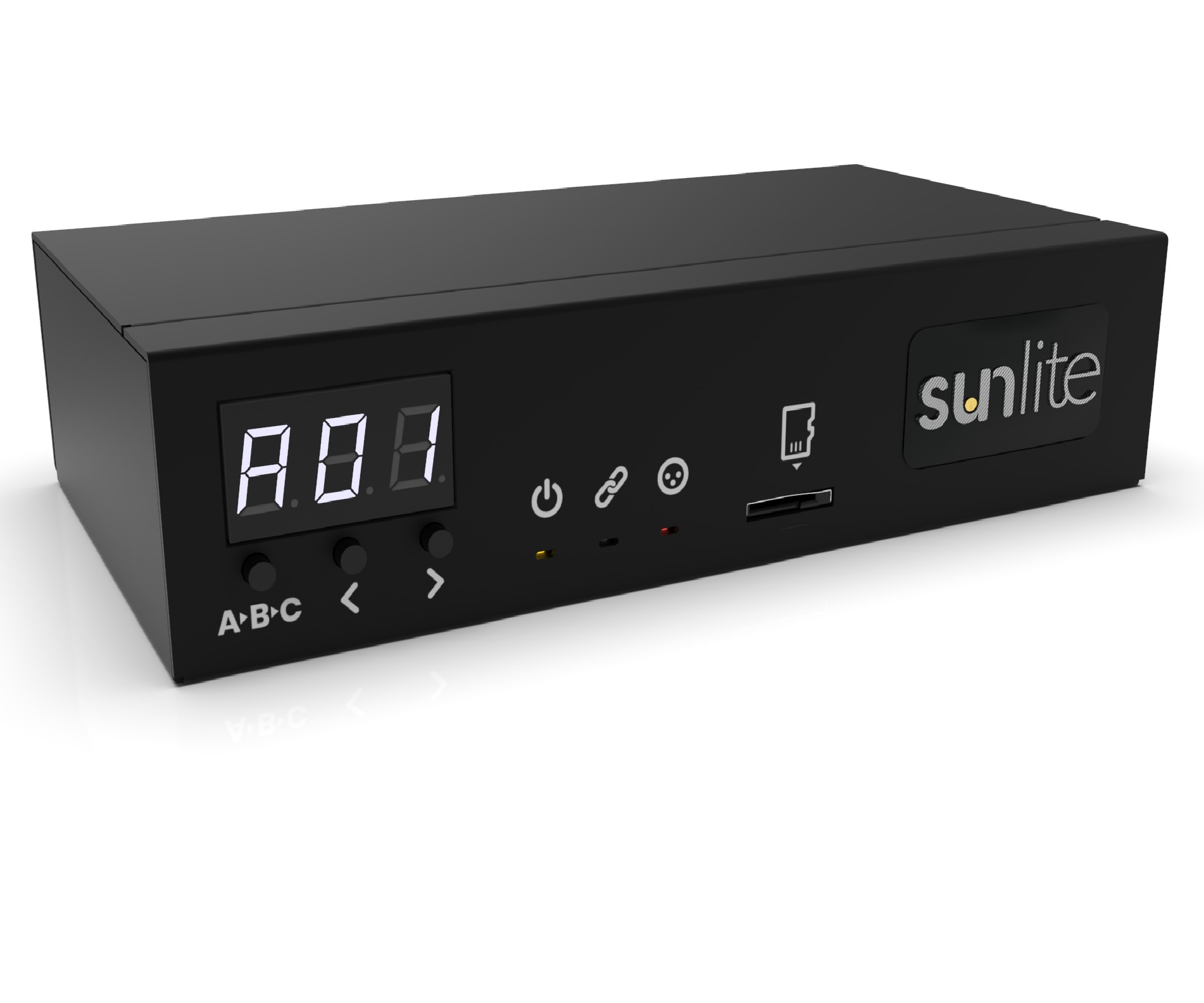 Featuring 1536 DMX channels out of the box the interface can be upgraded to 2048 channels on DmxSoft store. The FULL software mode offers the following possibilities Time triggers, multimedia (AUDIO and VIDEO), Midi Time Code sync...Everything is available, you will not need to buy any extension to take benefit of the software power. The FULL mode can be required should you want to build a fully synchronized show. The SUNLITE-FC comes with a microSD stand alone memory, allowing for programmed shows to be run in stand alone without a computer. This powerful feature is perfect for smaller shows where a computer is not needed, as a backup in case of computer failure, for rental applications or for architectural installations.