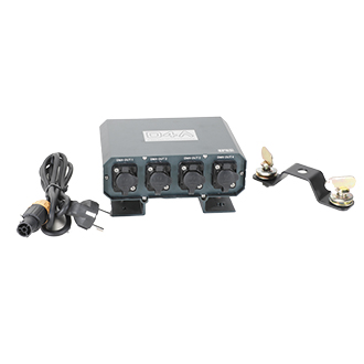 1개의 DMX 입력과 4개의 DMX 출력으로 되어 있으며, 모든 DMX 설정과 호환되고 모든 입출력간 100% 전기적 절연을 되어 있습니다. 부스터 기능은 수신되는 DMX 데이터를 증폭하여 신호 문제 없이 DMX 라인으로 통하여 조명장비에 전달합니다. IP65 등급이며, 실외, 실내 모두 가능합니다.